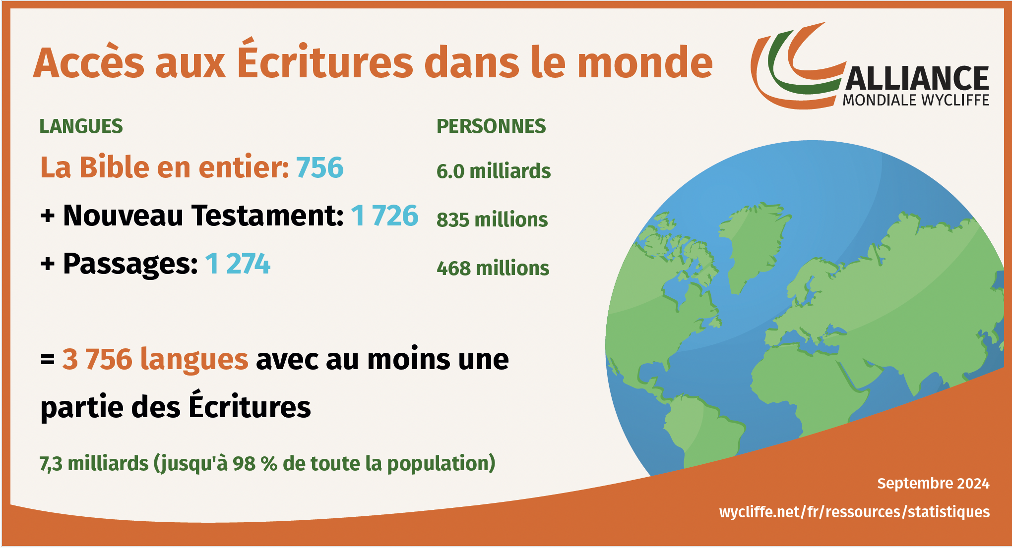 Les mesures de l’accès mondial aux Écritures ont évolué significativement avec l’acquisition de meilleures informations. Tandis que la liste devient plus petite, il y a moins de risques de doublons parmi les efforts menés.